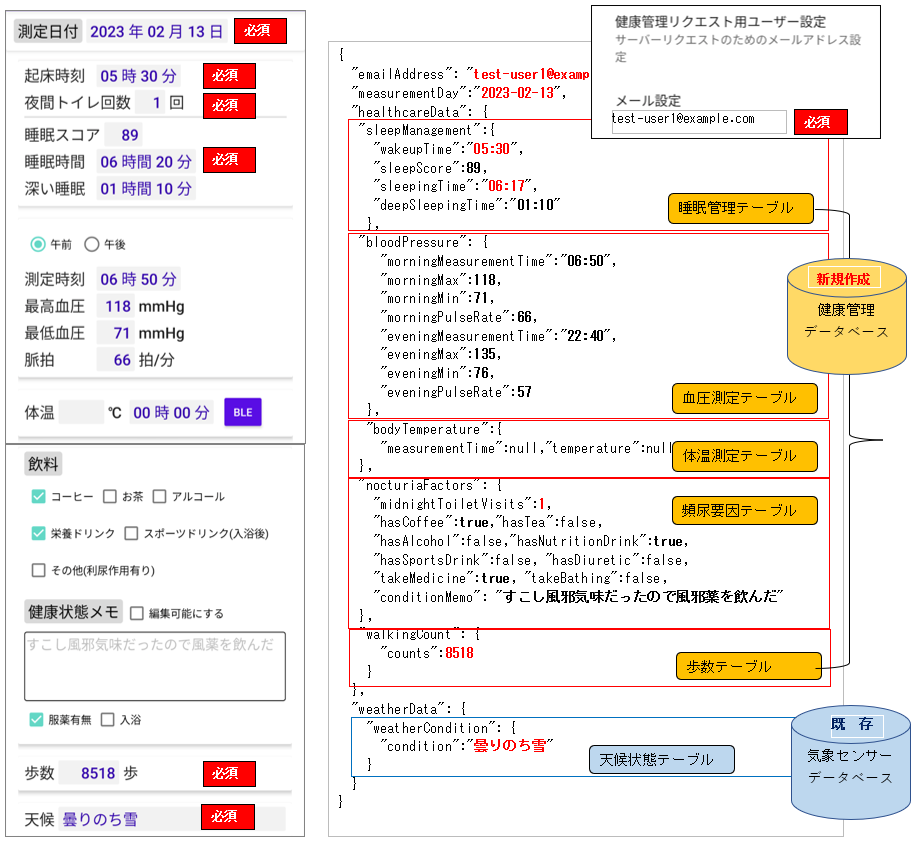 | データ種別 | 睡眠管理CSV | 頻尿要因CSV |